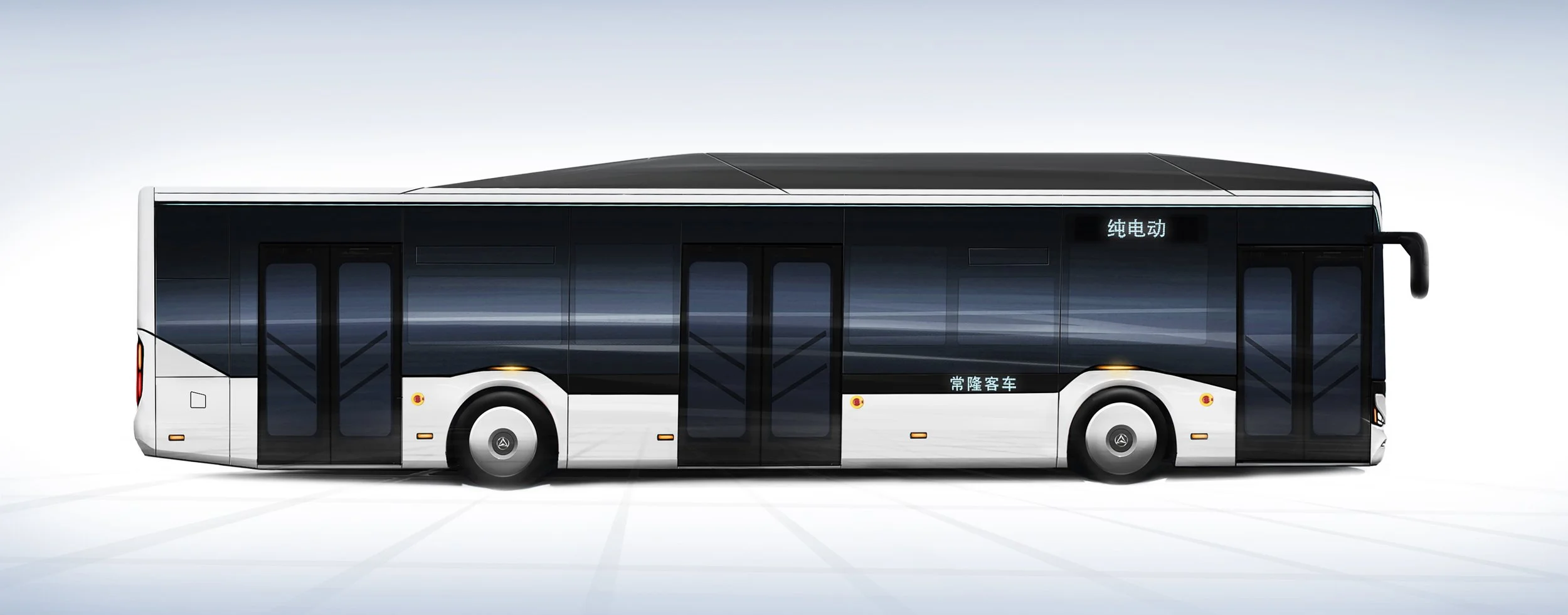 “The bus body design of the newly delivered N12E was developed by the design firm Dubiel Design Ltd. … sophisticated and streamlined exterior, harmonious front design, … is tailor-made for medium-to-long-distance passenger transport, corporate commuting, and tourism rental markets …”