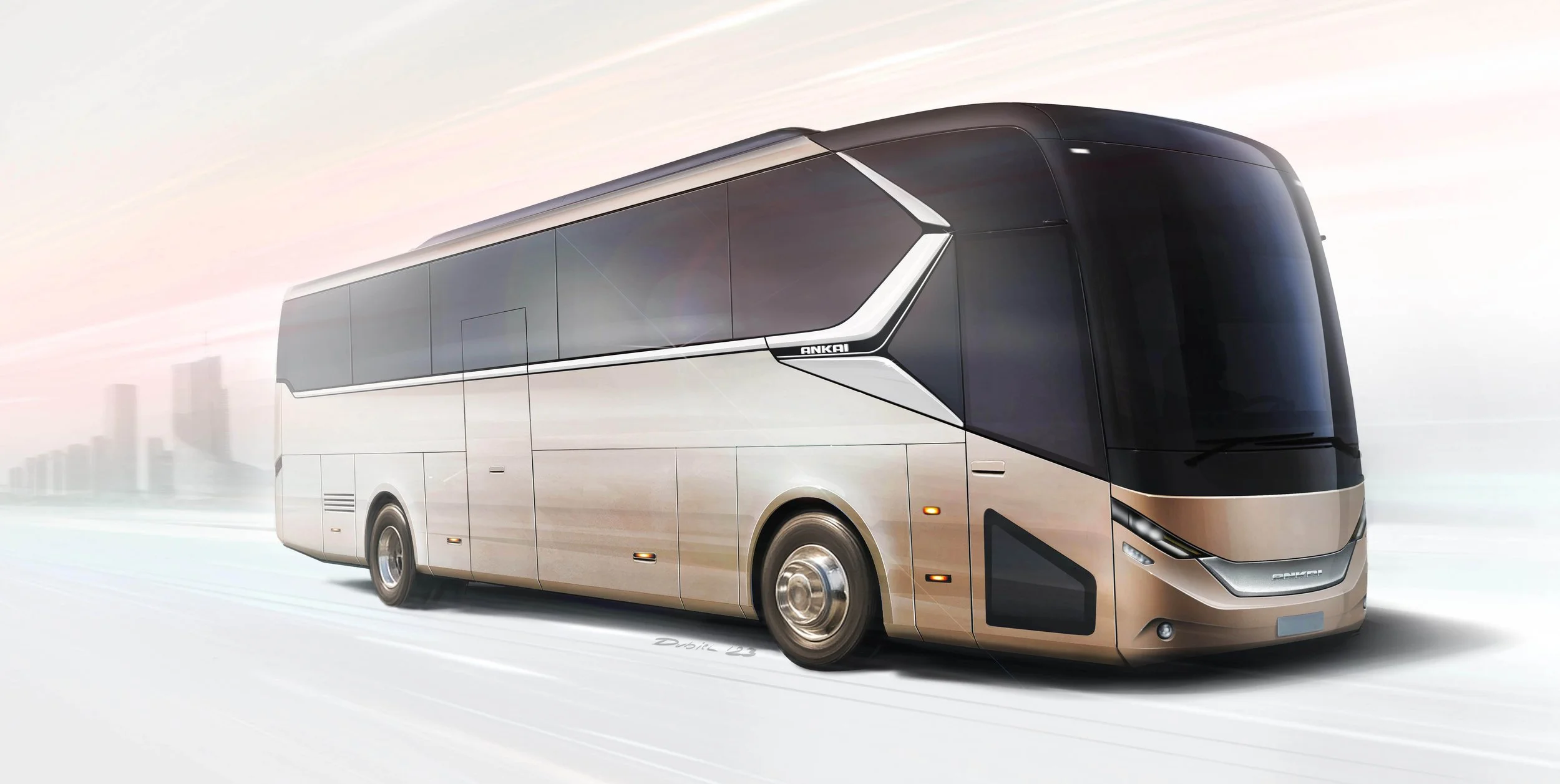 The new Ankai N12E fully electric coach, introduced in September 2025 in China, continues the implementation of the exterior body panel design developed in collaboration with our company, Dubiel Design.